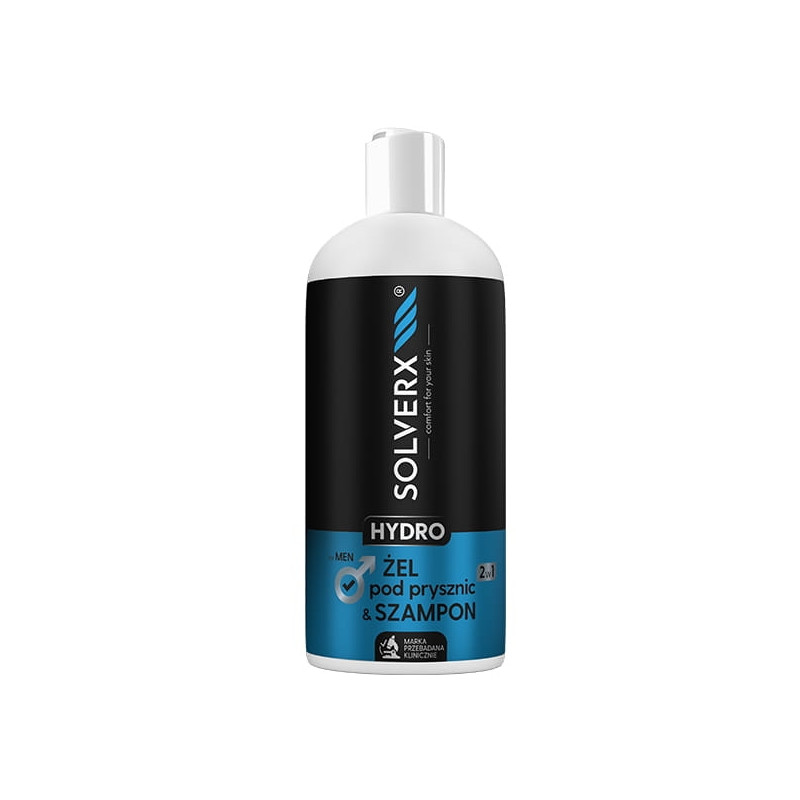 SOLVERX MEN HYDRO ŻEL POD PRYSZNIC 400ML 2W1 DLA MĘŻCZYZN przeznaczony do każdego typu skóry, szczególnie wymagającej nawilżenia.