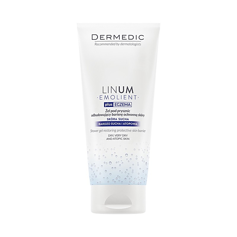 DERMEDIC LINUM EMOLIENT ŻEL POD PRYSZNIC ODBUDOWUJĄCY BARIERĘ OCHRONNĄ SKÓRY 200ML nie podrażnia i nie wysusza wymagającej suchej skóry